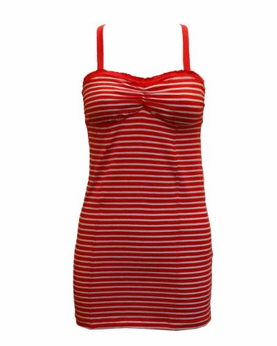 Ladies Red & White Horizontal Striped Tunic Top Cross Back Straps |FineBrandShop | Reviews