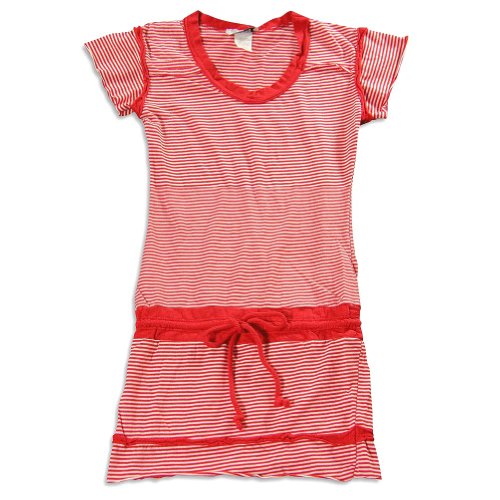 So Nikki - Girls Cap Sleeve Striped Tunic, Red, White, Scoop Neck, Vintage Trim, Cut Off Sleeves And Hem, Drawstring Tie At Hip, This Garment Is Designed Especially For You Any Slight Imperfection Or Variation In The Colors Are Normal And Add To The Unique Design Of The Garment, 100% Cotton, Made In USA, #21716