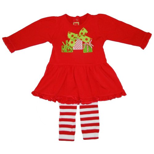 Santa Baby Red Holiday Dress and Striped Leggings (0-6 Months) |Mud Pie | Reviews