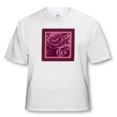 Muted wine red roses surrounded by a striped and marbelized frame T-Shirt is commercial quality high resolution heat transfers garment. 5.6-ounce, 50-50 cotton-poly; taped shoulder to shoulder, coverseamed ribbed collar, double-needle sleeve and bottom hem. Toddler and infant t-shirts are 4.1-ounce. 100% ring spun combed cotton. Our image transfer produces professional matte finish with Premium Quality and Superior image resolution. Colors do not bleed and the image is sharp and crisp. Available in white, gray, blue and pink. Washing Instructions: 1. Turn Garment inside-out and machine wash in cold water. 2. Do not use Bleach or Fabric Softener. 3. Detergents with bleach additives are not recommended. 4. Tumble Dry on Warm. 5. Do not Iron. Do not Dry clean.