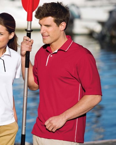 Sport-Tek Men's Big Dri-Mesh Sport Shirt With Striped Collar. K467, A stylishly tipped collar and piping combine with moisture-wicking Dri-Mesh technology for exceptional performance all day long. 3.5-ounce, 100% polyester double mesh. Double-needle shoulders and hem. Taped neck. Striped placket and collar. 2-button placket with pearlized buttons. Single piping on gussets.
