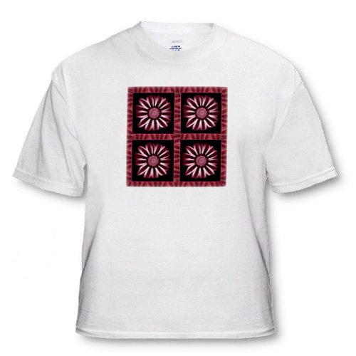 Four wine red striped flowers with red and orange flower petal border T-Shirt is commercial quality high resolution heat transfers garment. 5.6-ounce, 50-50 cotton-poly; taped shoulder to shoulder, coverseamed ribbed collar, double-needle sleeve and bottom hem. Toddler and infant t-shirts are 4.1-ounce. 100% ring spun combed cotton. Our image transfer produces professional matte finish with Premium Quality and Superior image resolution. Colors do not bleed and the image is sharp and crisp. Available in white, gray, blue and pink. Washing Instructions: 1. Turn Garment inside-out and machine wash in cold water. 2. Do not use Bleach or Fabric Softener. 3. Detergents with bleach additives are not recommended. 4. Tumble Dry on Warm. 5. Do not Iron. Do not Dry clean.