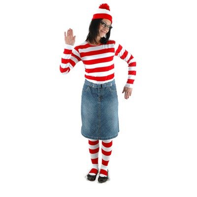 Look no further, your search for the perfect costume is over. Stand out from the crowd with this Where's Waldo ladies Wenda costume kit, complete with the globe-trotting master of camouflage's iconic striped shirt, hat, and glasses in quality polyester and plastic construction. Officially licensed, lovingly packaged, and just what you need to get all eyes on you, whether everyone else knows it or not. (Oh, and a little free advice: it's great for group photos.) Where's Waldo Messenger Bag: 057401CTBP Where's Waldo - Wenda Socks: 057399CTSC
