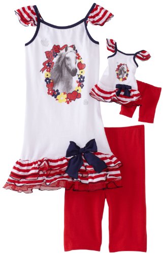 Dollie & Me Girls 2-6X Striped Jersey Horse Print Ruffle Hem Dress with Bike Short Reviews