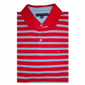 Men's Tommy Hilfiger Polo Shirt Size Large - XXL Short Sleeved Red, Blue & White Striped Reviews